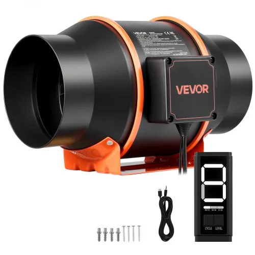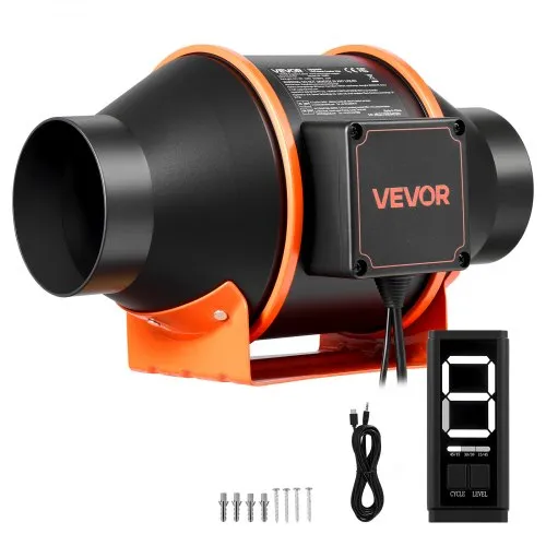VEVOR Inline Duct Fan, 4-Inch 200 CFM with Variable Speed Controller, Quiet AC-motor Ventilation Exhaust Fan for Cooling Booster, Grow Tents, Hydroponics
