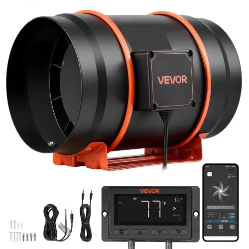 VEVOR Inline Duct Fan, 8-Inch 807 CFM with Temperature Humidity Controller, Quiet EC-motor Ventilation Exhaust Fan for Cooling Booster, Grow Tents, Hydroponics