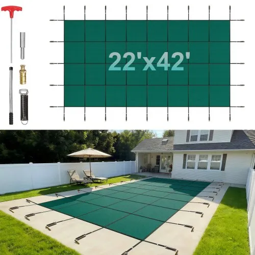VEVOR Inground Pool Safety Cover, 20 ft x 42 ft Rectangular Winter Pool Cover, Triple Stitched, High Strength Mesh PP Material with Good Rain Permeability, Installation Hardware Included, Green