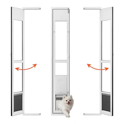 VEVOR Dog Door for Sliding Glass Door, 75 7/8" to 80 11/16" Adjustable Height, Aluminum Alloy Frame with Flap, Lock Design, for Medium-Sized Dogs, 180° Swing-Open Sliding Glass Pet Doors for Renters