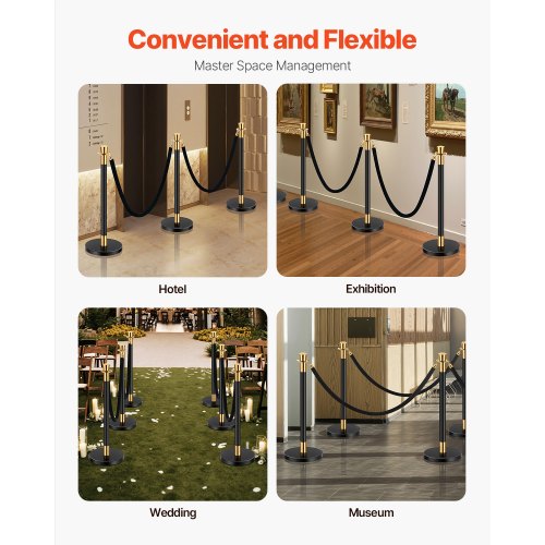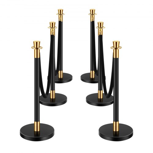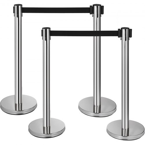 VEVOR Stanchions and Velvet Ropes, 6 Pcs Crowd Control Barriers with 4 Black Velvet Ropes, Stainless Steel Stanchion Post Queue with Sand Injection Hollow Base for Theater, Wedding, Party Supplies