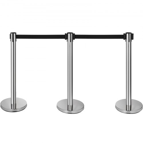 VEVOR Crowd Control Stanchion, 6-Pack Crowd Control Barrier, Carbon Steel Baking Painted Stanchion Queue Post with 3CS Retractable Belt & Fillable Base, Belt Barrier Line Divider, Easy Assembly