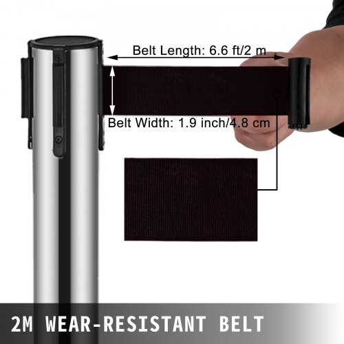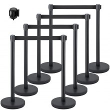 VEVOR Crowd Control Stanchion, Set of 6 Pieces Stanchion Set, Stanchion Set with 6.6 ft/2 m Red Retractable Belt, Crowd Control Barrier with Rubber Base – Easy Connect Assembly for Crowd Control (Blac