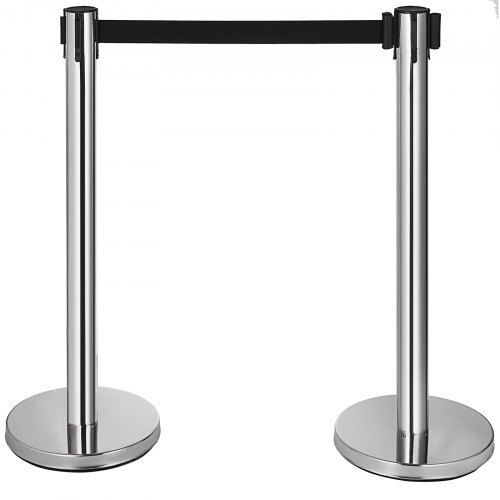 VEVOR Crowd Control Stanchion, Set of 6 Pieces Stanchion Set, Stanchion Set with 6.6 ft/2 m Red Retractable Belt, Crowd Control Barrier with Rubber Base – Easy Connect Assembly for Crowd Control (Silv