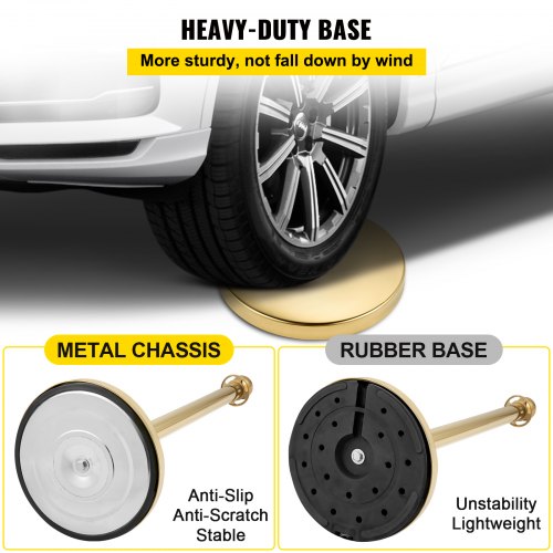 VEVOR Crowd Control Stanchion, Set of 8 Pieces Stanchion Set, Stanchion Set with 5 ft/1.5 m Red Velvet Rope, Gold Crowd Control Barrier with Sturdy Concrete and Metal Base – Easy Connect Assembly