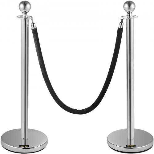 VEVOR Crowd Control Stanchion, Set of 2 Pieces Stanchion, Stanchion Set with 5 ft/1.5 m Black Velvet Rope, Silver Crowd Control Barrier with Sturdy Concrete and Metal Base – Easy Connect Assembly
