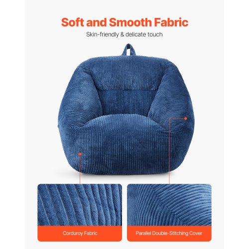 VEVOR Bean Bag Chair, Giant BeanBag Chair with Removable & Washable Cover for Adults, Fluffy Plush & High-Density Foam Filling Floor Adult Bean Bag with Zapper, Ideal for Living Room, Bedroom, Blue
