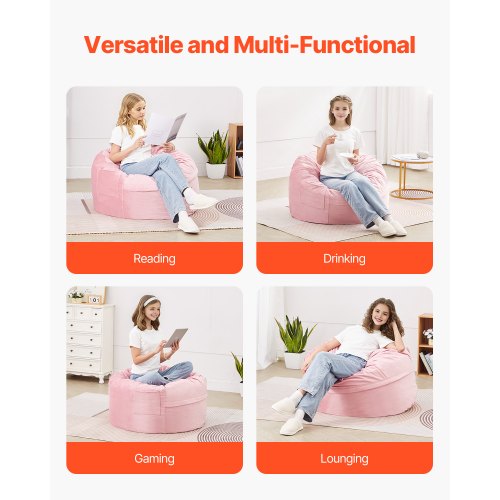 VEVOR Bean Bag Chair, Giant BeanBag Chair with Removable & Washable Cover for Adult, Dutch Velvet & High-Density Foam Filling Round Bean Bag with Handle and Side Pocket for Living Room Bedroom, Black