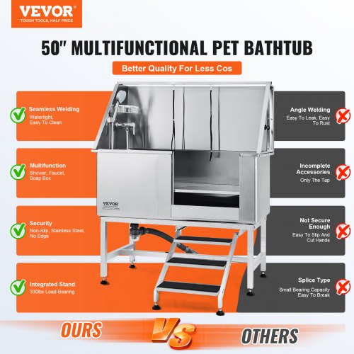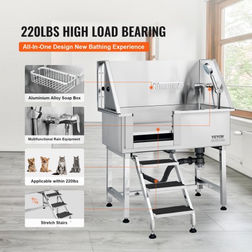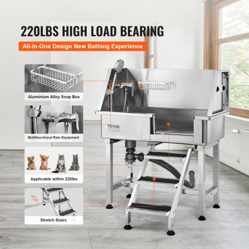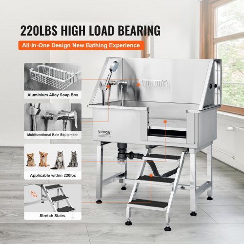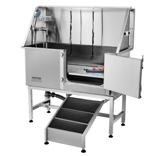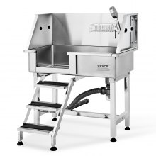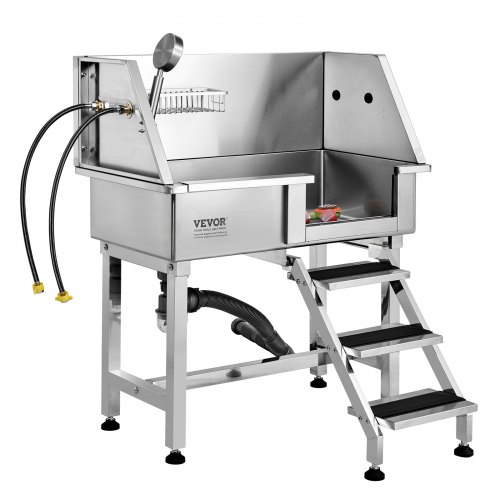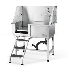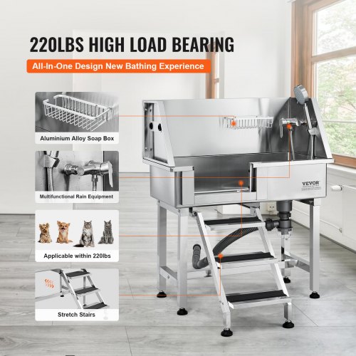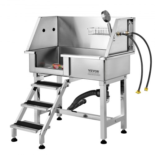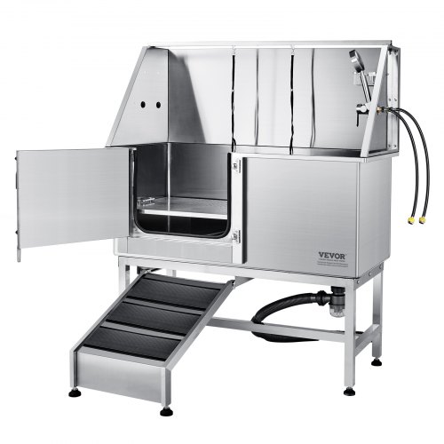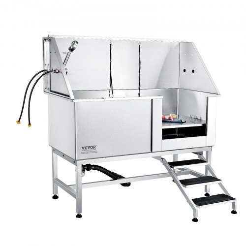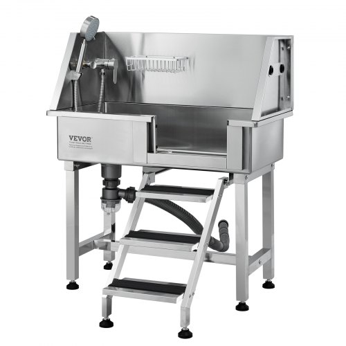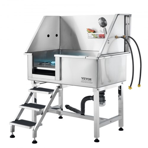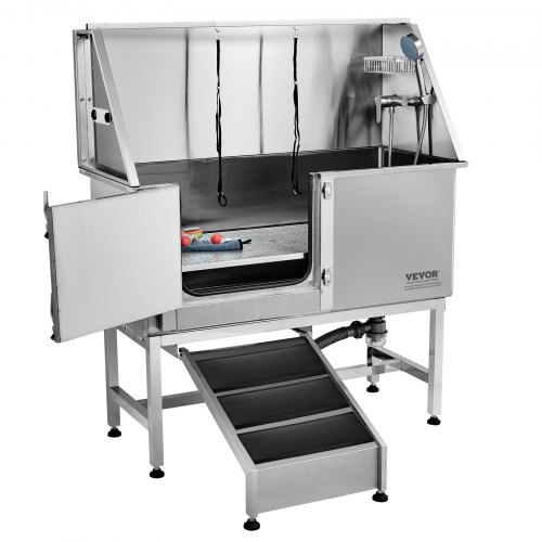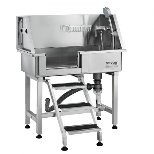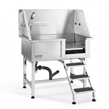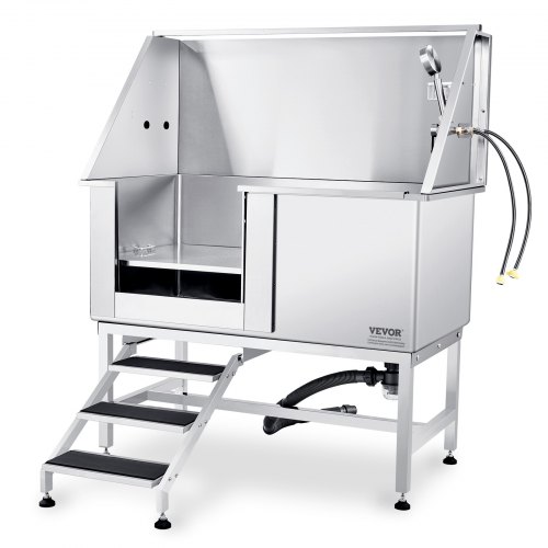VEVOR 50" Pet Dog Bathing Station w/Stairs, Professional Stainless Steel Dog Grooming Tub w/ Soap Box, Faucet,Rich Accessory, Dog Bathtub for Large,Medium,Small Pets, Washing Sink for Home Right