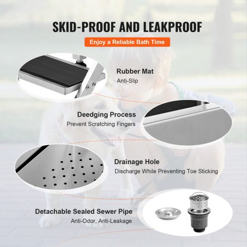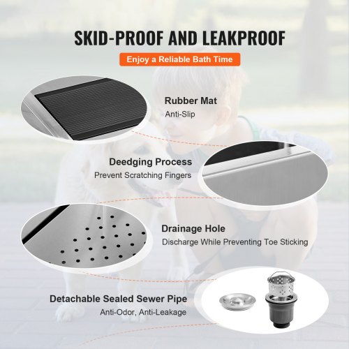 VEVOR 50" Pet Dog Bathing Station w/Ramp, Professional Stainless Steel Dog Grooming Tub w/ Soap Box, Faucet,Rich Accessory, Dog Bathtub for Large,Medium,Small Pets, Washing Sink for Home Right