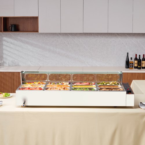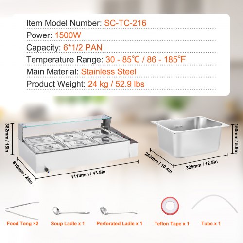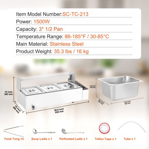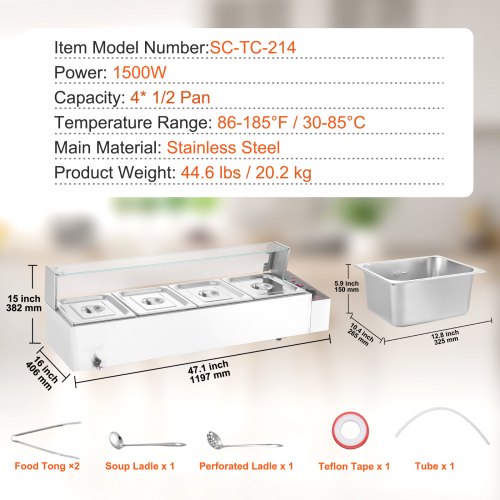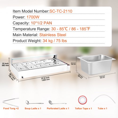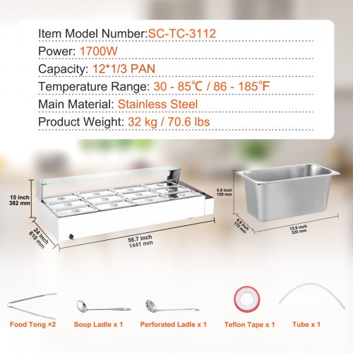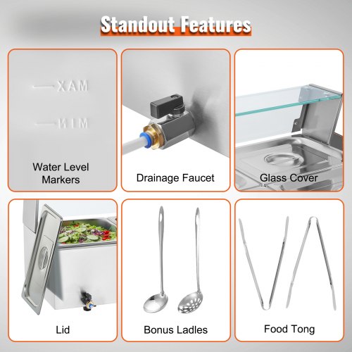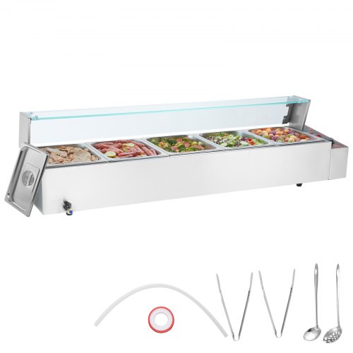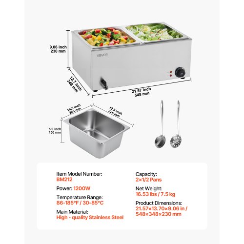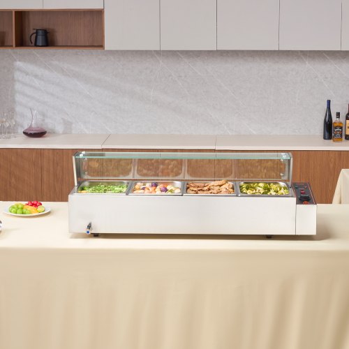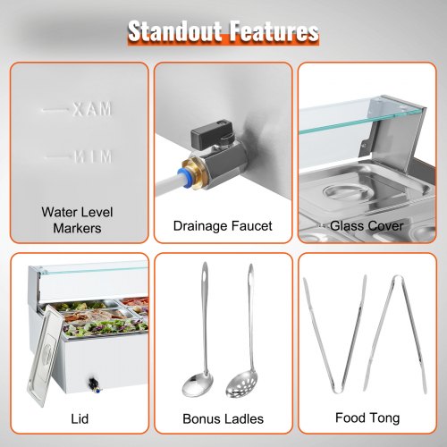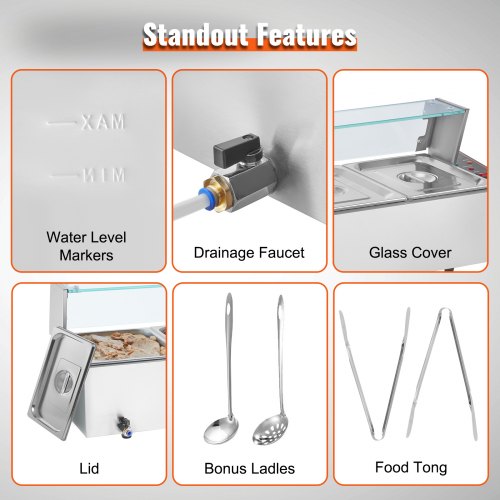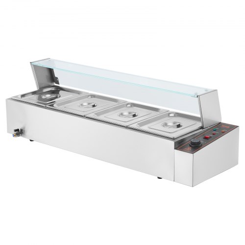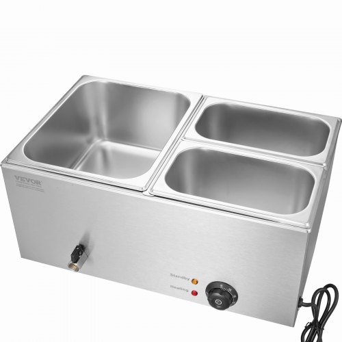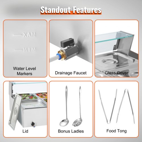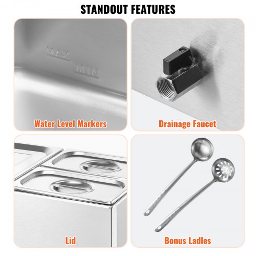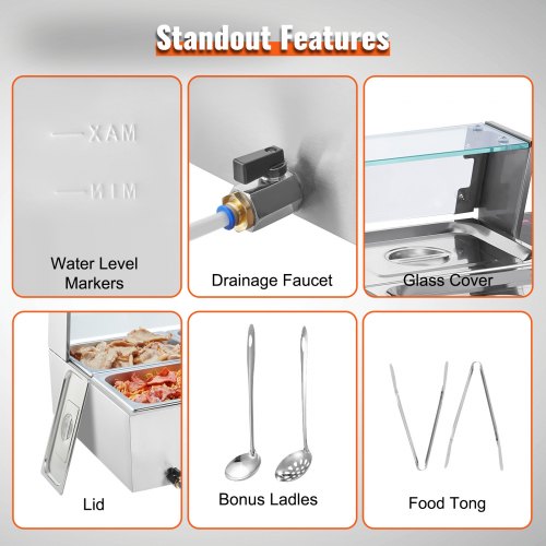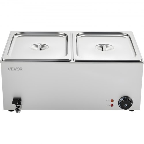 VEVOR Commercial Food Warmer, 1200W Electric Stainless Steel Steam Food Warmer, Fast Heating Countertop Buffet Bain Marie with Detachable Power Cord, for Catering, Restaurants, Parties & Buffets