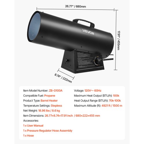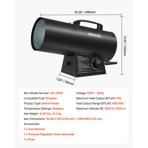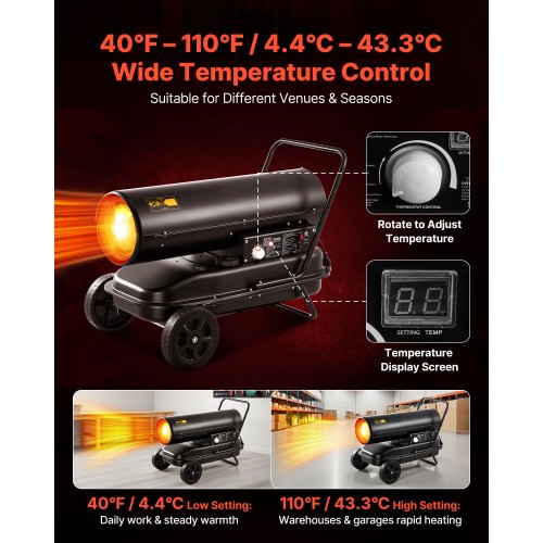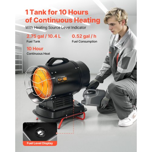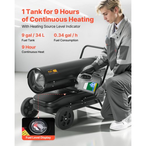 VEVOR Kerosene Forced Air Heater, 70000 BTU Portable Torpedo Diesel Space Heater with Thermostat, 5 Gallon Tank Energy-Efficient heavy-duty Heater, for Indoor Outdoor Use Workshop Industry