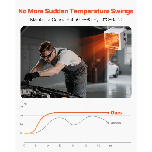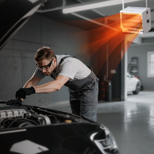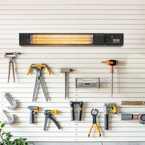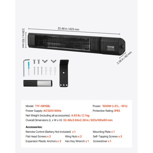 VEVOR Infrared Heater, 1500W Remote Control Electric Space Heater, LED Screen Patio Heater w/ 3 Speeds & Timer, Outdoor/Outdoor for Porch,Dining Room,Studio, with Stand & Mount to Ceiling/Wall,34in L