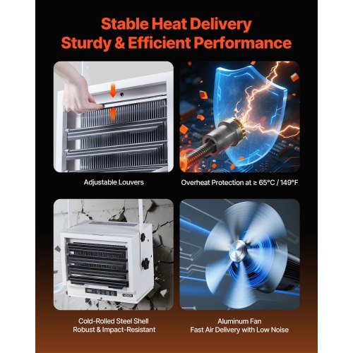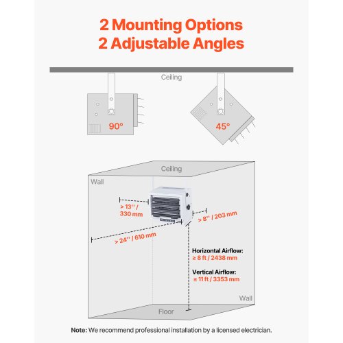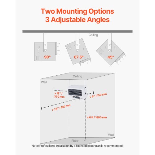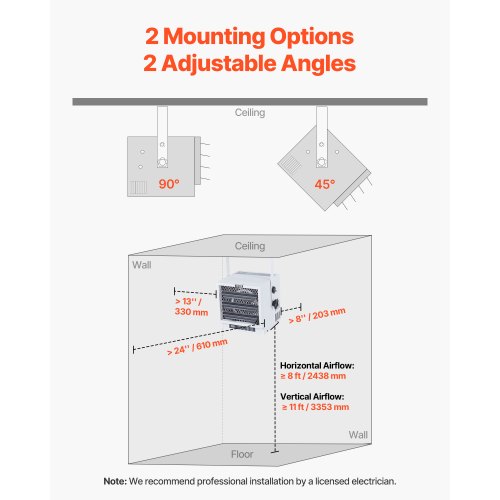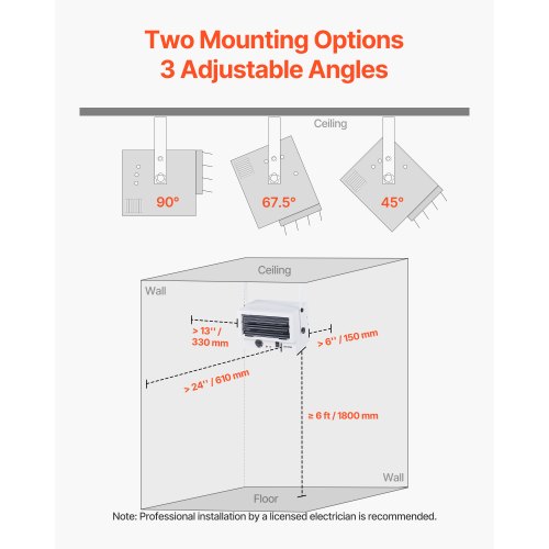VEVOR Infrared Heater, 1500W Remote Control Electric Space Heater, LED Screen Patio Heater w/ 3 Speeds & Timer, Outdoor/Outdoor for Porch,Dining Room,Studio, with Stand & Mount to Ceiling/Wall,24 in L