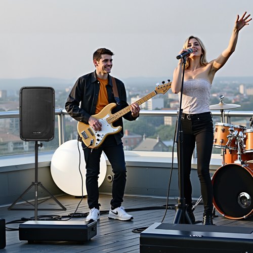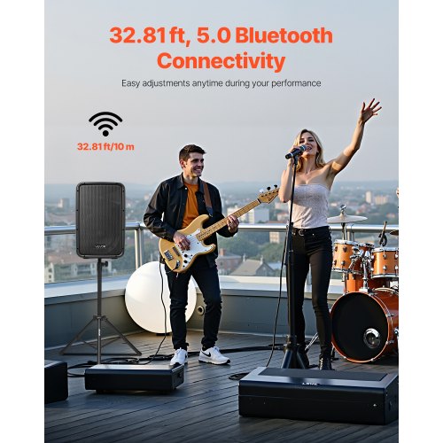 VEVOR Portable PA System, 2000W (PMPO) Powered, Sound System Set with 3 Channel Mixer, Dual Speakers, Wireless Bluetooth, Microphone, Compact Stands, USB & SD Inputs, Remote Control, for DJs Events