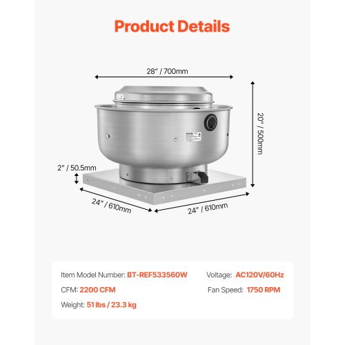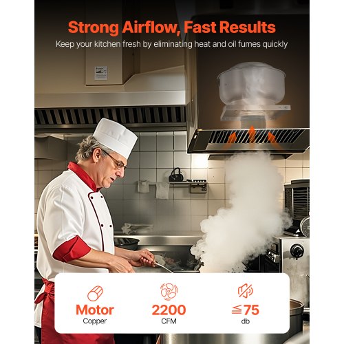 VEVOR Commercial Kitchen Exhaust Fan, 2200 CFM Restaurant Canopy Hood Exhaust Fan, 0.75HP 560W Direct Drive Food Truck Hood Vent, High Speed & Low Noise, for Warehouse, Agriculture