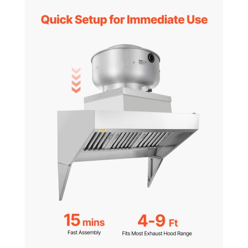 VEVOR Commercial Exhaust Hood, 6FT Food Truck Hood Exhaust, 201 Stainless Steel Concession Trailer Hood with 3 Detachable U-shaped Grid Oil Filter Mesh, Rust Resistant Vent Hood for Kitchen Restaurant