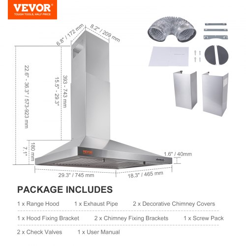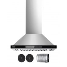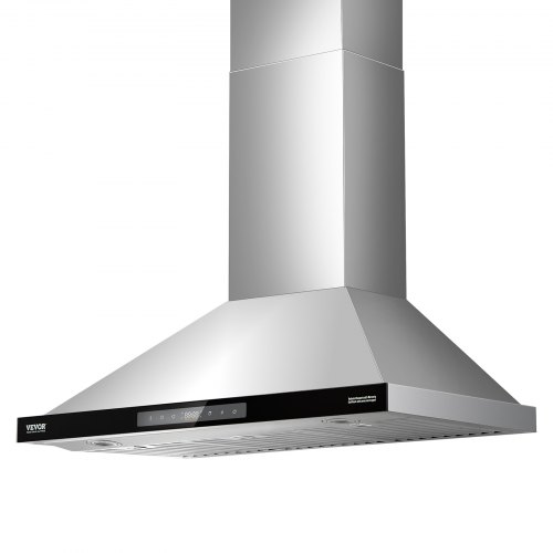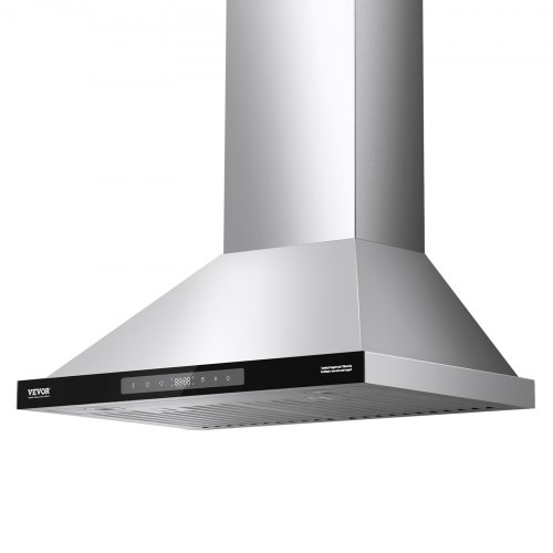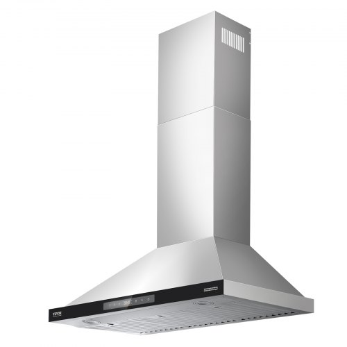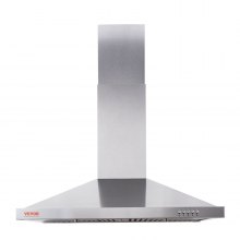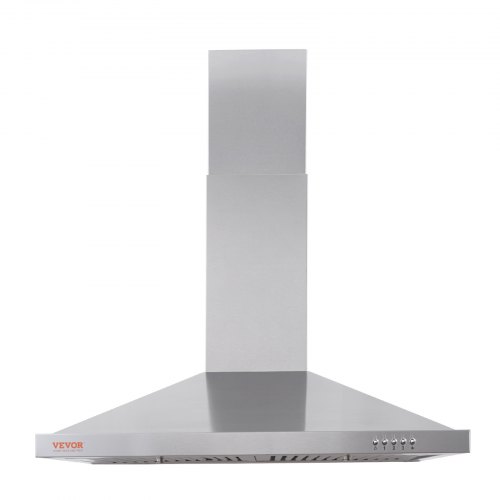 VEVOR Wall Mount Range Hood, Ductless Chimney-Style Kitchen Stove Vent, Stainless Steel Permanent Filter with 3-Speed Exhaust Fan, 2 Baffle Filters, LED Lights, Push Button, Silver (30 inch)
