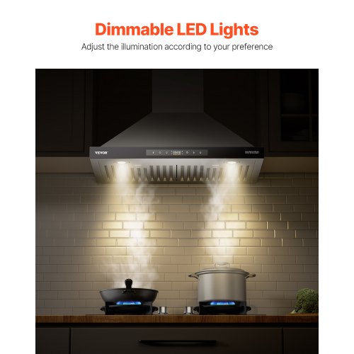 VEVOR Under Cabinet Range Hood, Dual Motors Ductless Kitchen Stove Vent, Stainless Steel Permanent Filter with 3-Speed Exhaust Fan, 2 Baffle Filters, LED Lights, Touch Control Panel, Silver (30 inch)