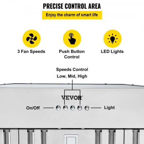 VEVOR Insert Range Hood, 800CFM 3-Speed, 30 Inch Stainless Steel Built-in Kitchen Vent with Push Button Control LED Lights Baffle Filters, Ducted/Ductless Convertible, ETL Listed