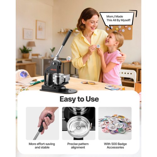 VEVOR Button Maker Machine, 25mm (1 inch) Badge Punch Press Kit, Children DIY Gifts Pin Maker, Button Making Supplies with 500pcs Button Parts & Circle Cutter & Magic Book