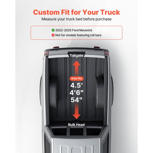 VEVOR Hard Tri-Fold Truck Bed Tonneau Cover, Compatible with 2022-2025 Ford Maverick 4.5 ft (54.4 in) Bed, Heavy-Duty Waterproof Low-Profile Hard Folding Truck Cover with Aluminum Alloy Support Bar