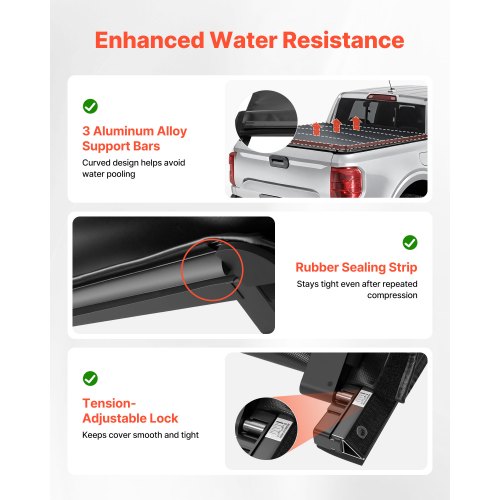 VEVOR Retractable Tonneau Cover, 5.5 ft Hard Tonneau Cover with Built-in Drainage Pipe for 2022 - 2024 Toyota Tundra Crew Cab w/ Deck Rail System , Hard Tonneau Cover with Double-Lock & T-Slot