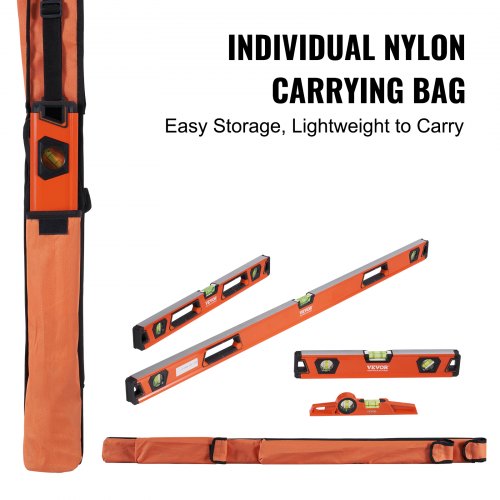 VEVOR Magnetic Torpedo Level, 48/24/16/10 in Mechanical Level Set, Bubble Vials Ruler for 45/90/180 Degree, Aluminum Alloy Leveler Tool w/ Viewing Window, Shock-Resistant for Measuring Plumbing, Wood