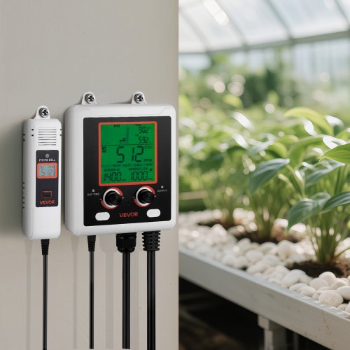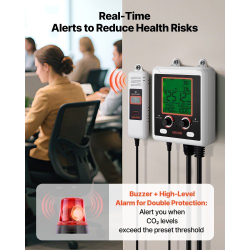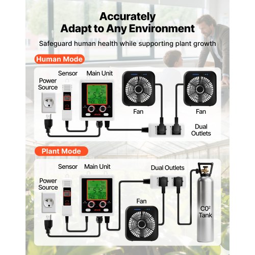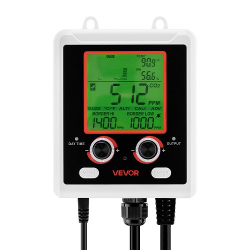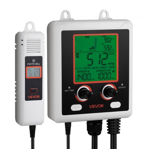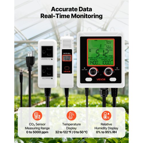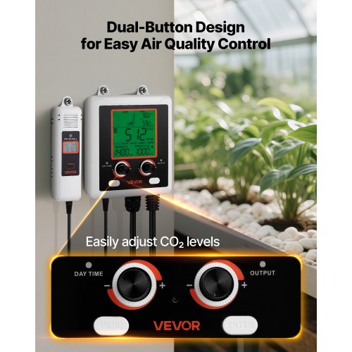 VEVOR Carbon Dioxide Monitoring Controller, Dual Outlets Carbon Dioxide Controller, CO2 Meter Monitor Day and Night Detection Feature, NDIR CO2 Sensor for Green House, Laboratories, Classrooms, Home