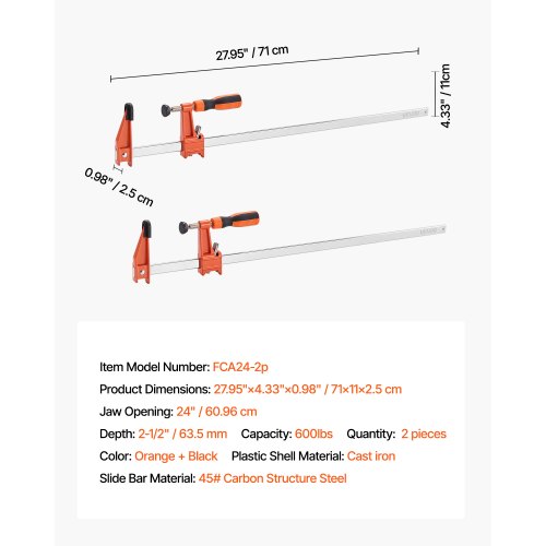 VEVOR Bar Clamps for Woodworking, 4-Pack 36 inch Opening, Lockable F-Clamp with 600 lbs Load Limit, 2-1/2 inch Depth, Cast Iron and Carbon Steel, Easy to Use, Wood Clamps for Woodworking Metal Working