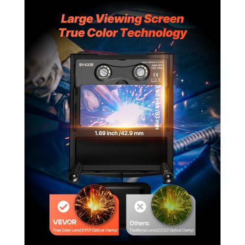 VEVOR Welding Helmet Auto Darkening, 3.94" x 2.34" True Color Welding Hood, Solar-Powered Welder Mask with 4 Arc Sensors, Wide Shade 4/5-9/9-13 for TIG MIG ARC Weld Grinding Cutting - METIS Series