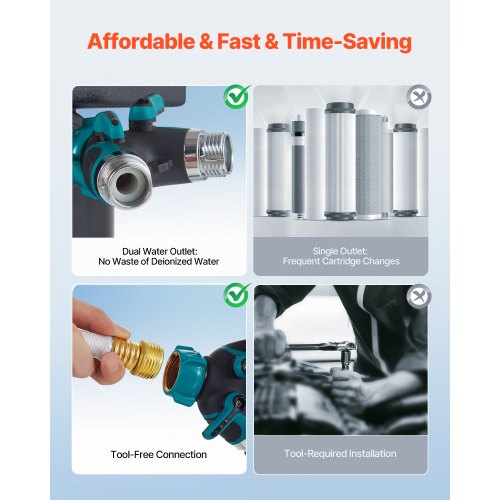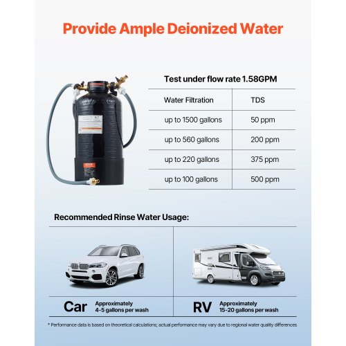 VEVOR Deionized Water System for Car Wash, Premium Water Deionizer For Car Washing with Handheld TDS Meter, Spotless Water Spot Remover Filter with Dual Outlet Mode, Fit for Cars/RVs/Motorcycles