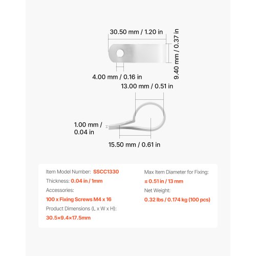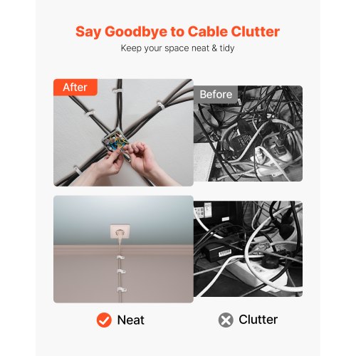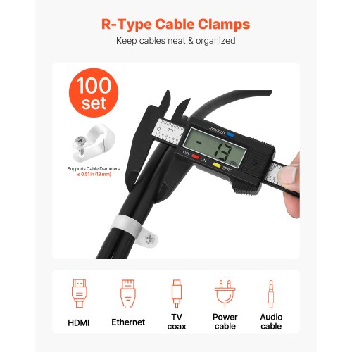 VEVOR R-Type Cable Clip, 0.51 in Wire Clamp, 100 Pack Nylon Screw Mounting Cord Fastener Clips with Screws, Electrical Grip Clip Wires Clamp, for Cable Management, Wire Organizer & Cord Holder(White)