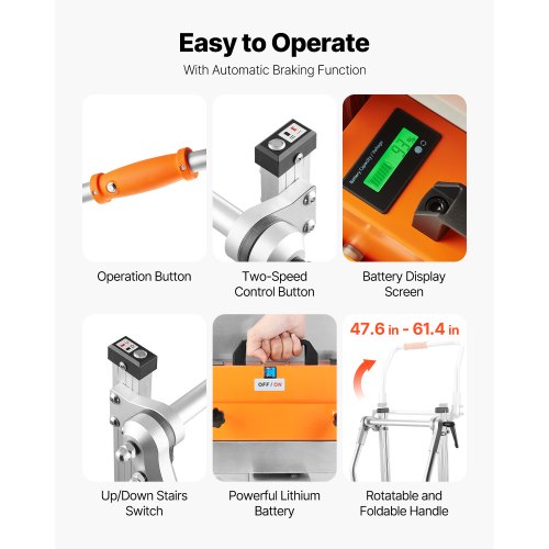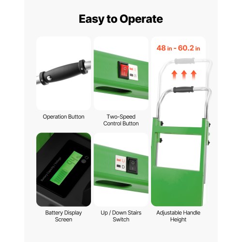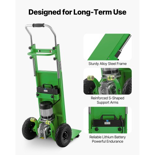 VEVOR Electric Stair Climbing Dolly, 880lbs Electric Stair Climbing Hand Trucks with 157.5in Rope & Extendable Handle, Heavy Duty Stair Climber for Warehouse Logistics, Moving Furniture(Green)