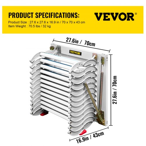 VEVOR Attic Steps Pull Down 12 Steps Attic Stairs, Alloy Attic Access Ladder, Blue Pulldown Attic Stairs, Wall-mounted Folding Stairs for Attic, Retractable Attic Ladder with Armrests, 9.8 feet Height