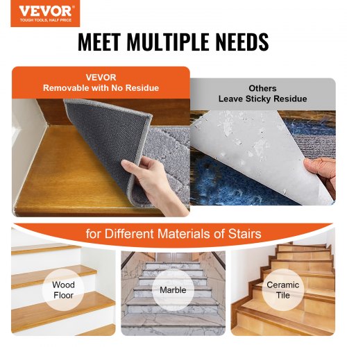 VEVOR Stair Treads, Stairs Carpet Non Slip 9" x 28", Indoor Stair Runner for Wooden Steps, Anti Slip Carpet Soft Edging Stair Rugs Mats for Kids Elders and Dogs, 15 pcs, Light Brown