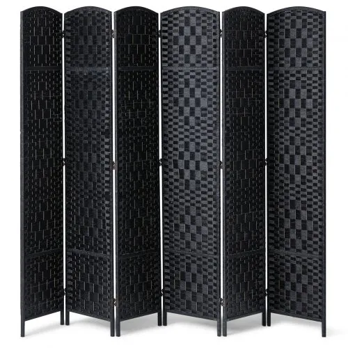 VEVOR 6 Panel Room Divider, Hand-Woven Folding Privacy Screens with Hinges, Portable and Freestanding Partition Room Dividers and Wall Divider for Room Separation, Black