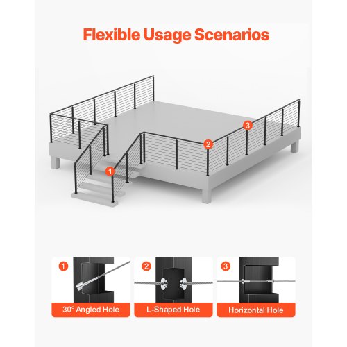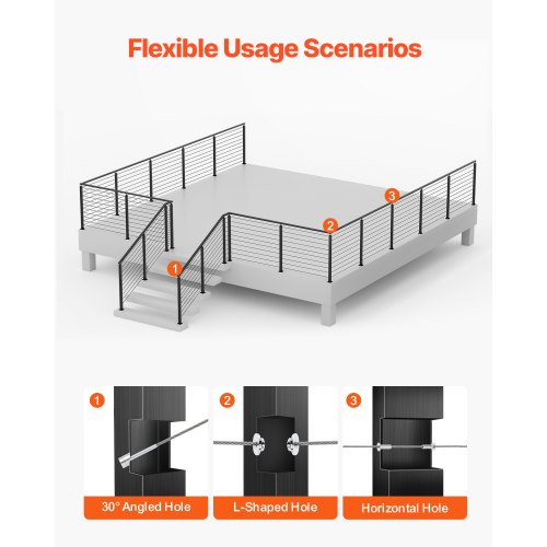 VEVOR 6.5 ft Complete Cable Railing Kit with Post, 35 inch Tall Matte Black Stainless Steel Handrail Cuttable for Outdoor/Indoor Steps, Level Hole Drilled Railing Posts System for Stairs,Deck,Balcony