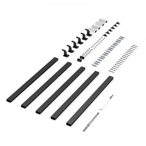 VEVOR Staircase Balusters 101 Pack, 36 In Aluminum Stair Balusters, 3/4 Inch Water-Proof Round Metal Spindle Railing, Hollow Deck Railing with Rail Caps & Screws for Stairs, Porch, Patio, Matte Black