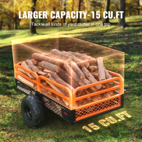 VEVOR Heavy Duty Steel ATV Dump Trailer, 1500-Pound Load Capacity 15 Cubic Feet, Tow Behind Dump Cart Garden Trailer, with Removable Sides and 2 Tires, for Mowers, Tractors, ATV, UTV