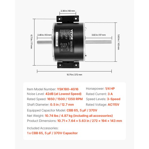 VEVOR 3315332.005 RV AC Fan Motor Replacement Genteq F48AF70A61, Dometic Brisk Air II Fan Motor, Compatible with Dometic Brisk Air II B57915 B59516 B59146 B59186 - 1/4HP AC115V 3A 1650RPM (3 Speeds)