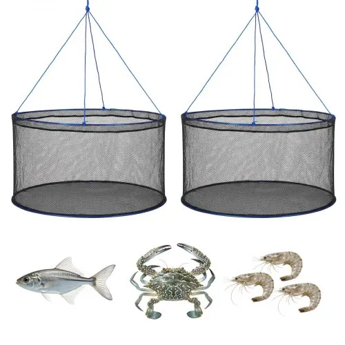 VEVOR Double Ring Crab Trap, 24 inch Top, 20 inch Bottom, Two Rings Crab Kit, Foldable Fishing Net with Gauge, 60 ft Rope, Wire Grid Bottom, Rock and Blue Crab, Dock & Pier Crabbing, 2 Set