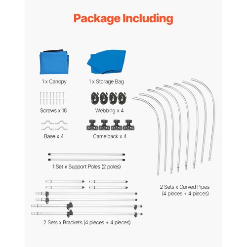 VEVOR 4 Bow Boat Bimini Tops, 600D Polyester Canopy with Aluminum Alloy Frame, Waterproof & Sun Shade Boat Awning Canopy with Storage Bag, 2 Support Poles, 4 Straps, 96"Lx(85"-90")Wx54"H, Pacific Blue