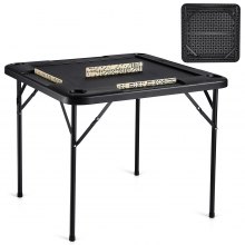 VEVOR Mahjong Table, Square 4 Player Folding Card Table with 4 Cup Holders & 4 Chip Trays, Portable Domino Game Table with 1 Set of Dominoes for Mahjong Poker Puzzles, 35.4 x 35.4-inch, White