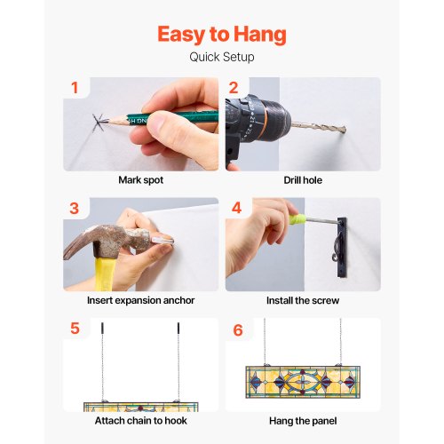 VEVOR Stained Glass Window Panel, 32 x 10 in, Tiffany Style Hanging Transom Window Panel with Chain, Large Horizontal Rectangle Stain Glass, Vintage Traditional Art Handcrafts for Kitchen Home Decor