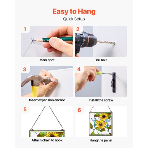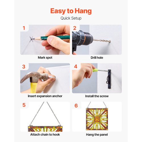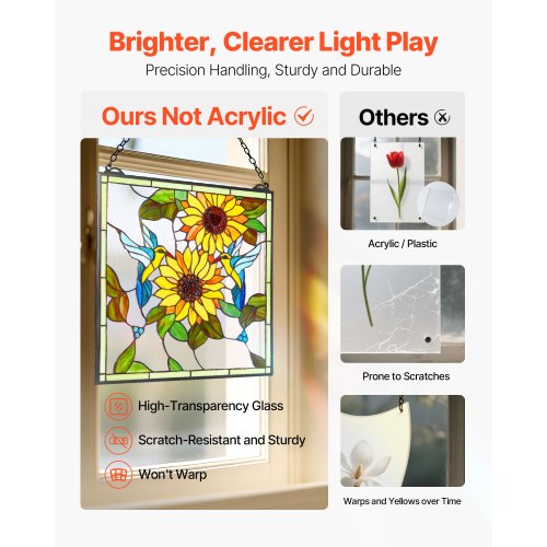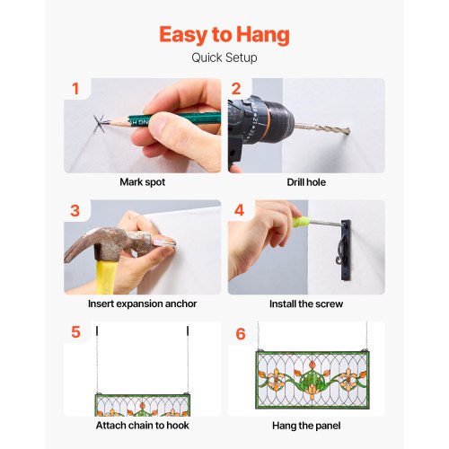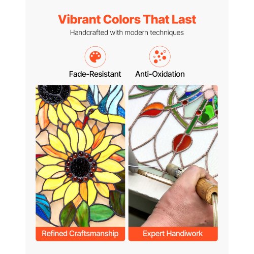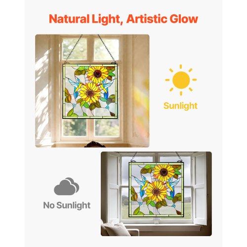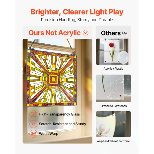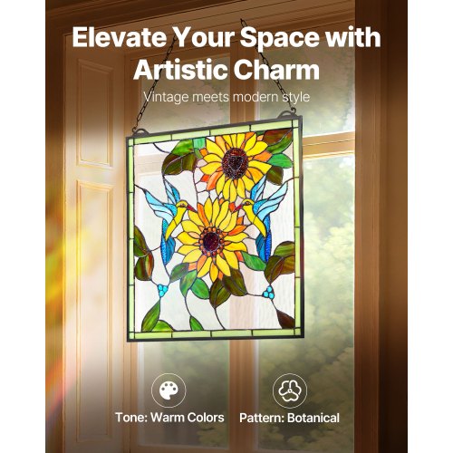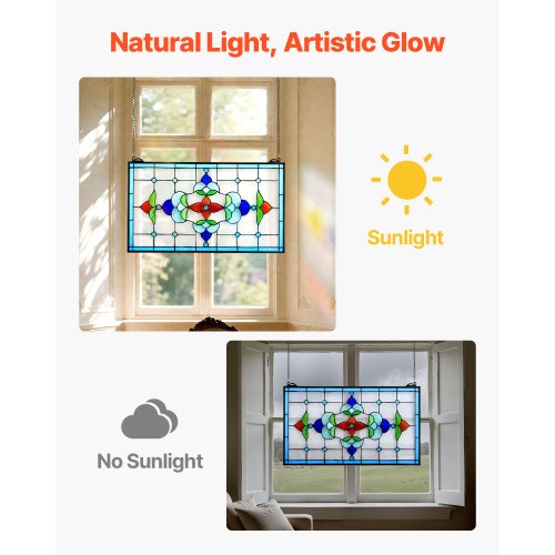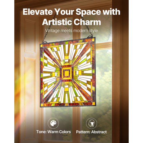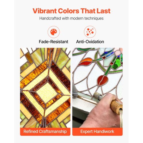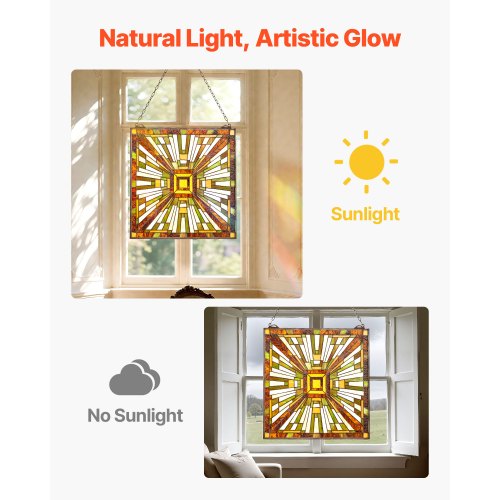 VEVOR Stained Glass Window Panel, 20 x 20 in, Tiffany Style Hanging Transom Window Panel with Chain, Large Vertical Rectangle Stain Glass, Vintage Traditional Art Handcrafts for Kitchen Home Decor