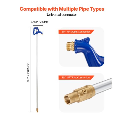 VEVOR Frost Proof Yard Hydrant, 5.24FT Freeze-Proof Outdoor Faucet with 36" Bury Depth, 3/4" NPT Pipe Connection, Lever Handle + Handwheel, No Lead Freezeless Hydrant for Yard Garden Farm Irrigation