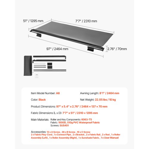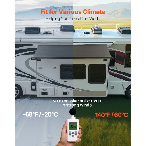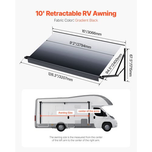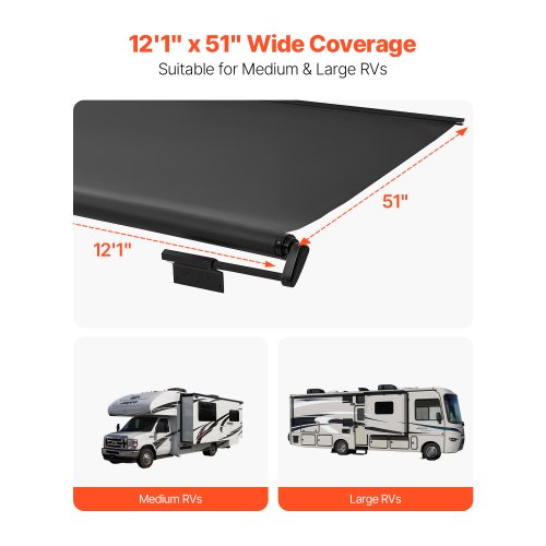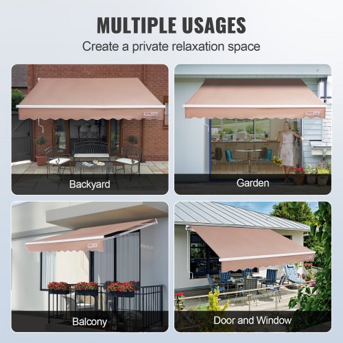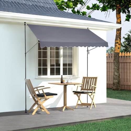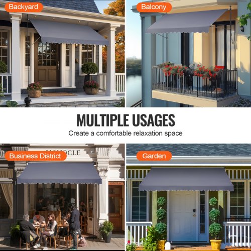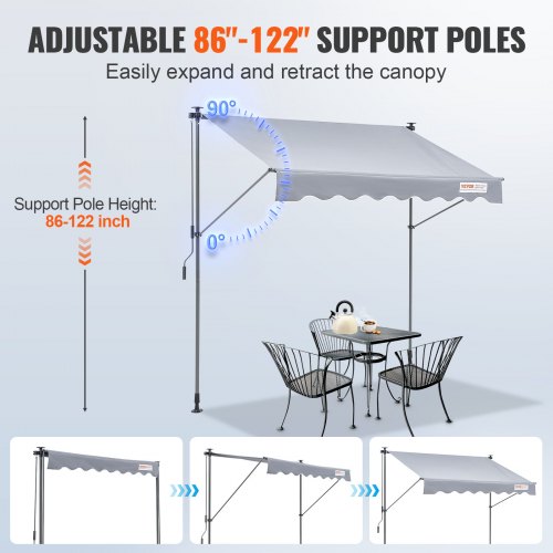 VEVOR 98 x 47" Patio Awning Retractable, Awning Sunshade Shelter with Manual Crank Handle, Outdoor Patio Canopy Sunsetter Deck, Adjustable Height from 86 to 122 in, for Patio/Balcony/Yard, Dark Gray