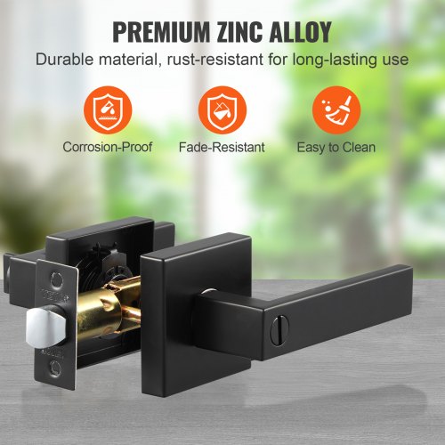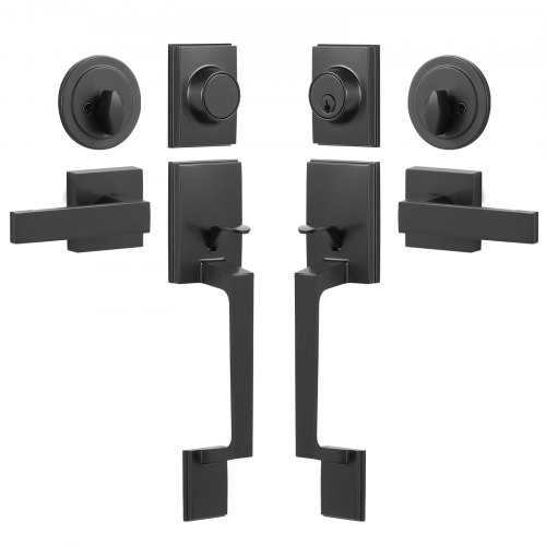 VEVOR Double Door Handle Set, Matte Black Square Door Lever, Double Front Door Handle Set with Reversible Handle Lever, Heavy Duty Double Door Lock Set with Dummy, for Office Door or Front Door