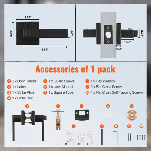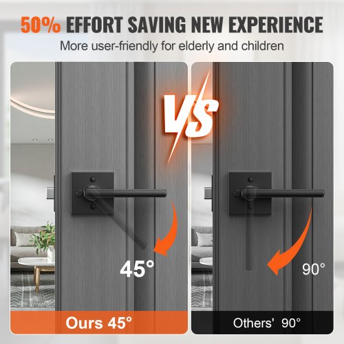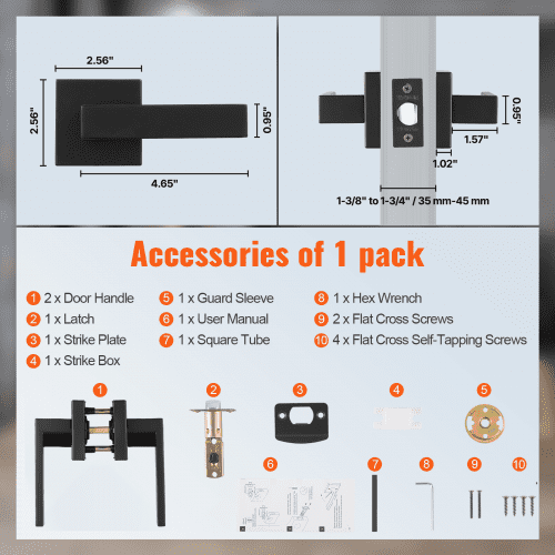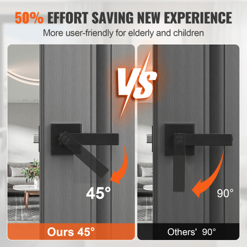 VEVOR Passage Door Handle, 6 Pack Matte Black Door Lever, Left or Right Handing Reversible Lever Non-Locking, 45° Rotation to Open, Universal Square Interior for Hallways, Closets, Meeting Spaces